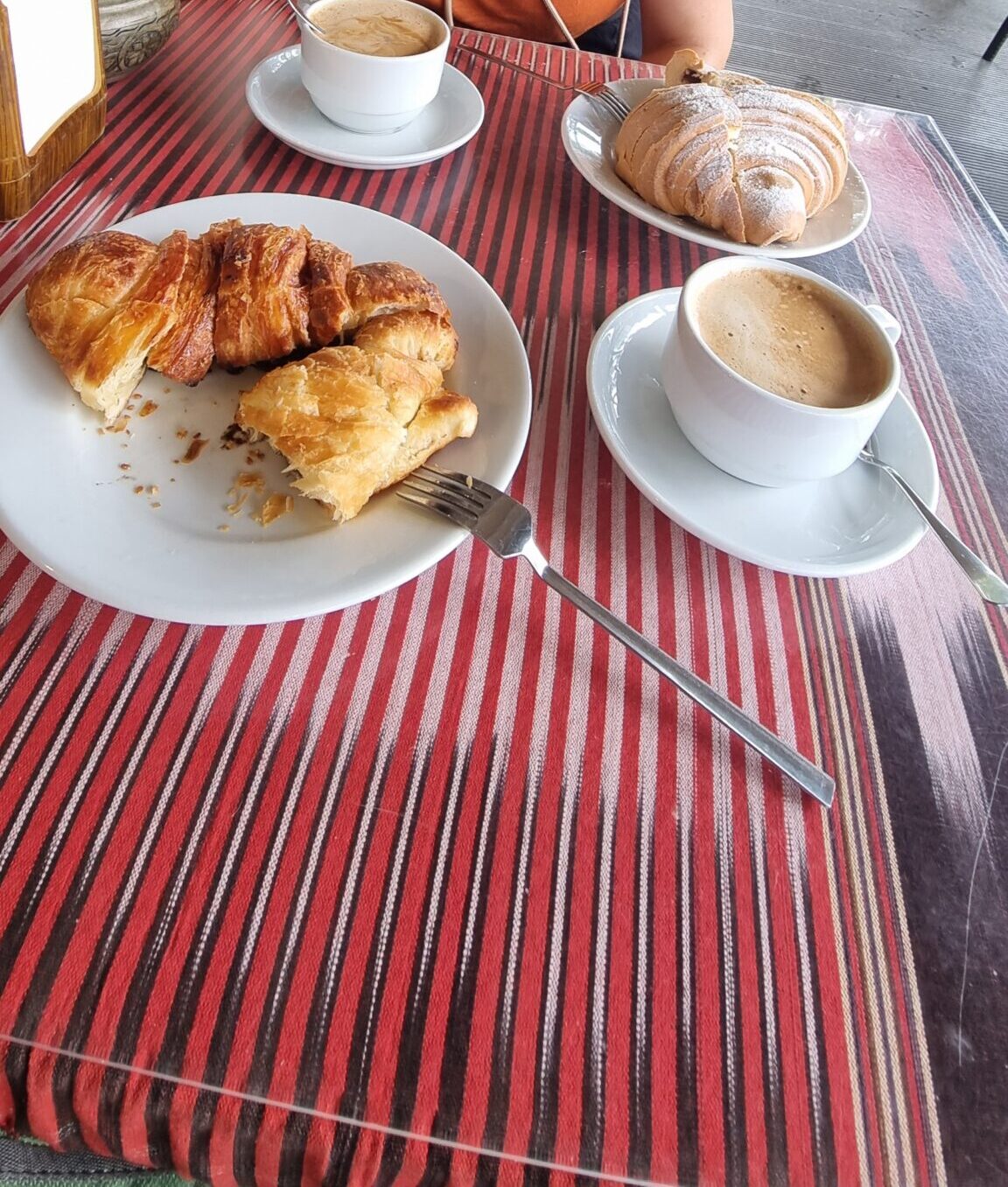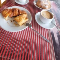 Wir entscheiden uns irgendwann, wieder ins Tram einzusteigen und ein wenig weiterzufahren, bis der Regen nachlässt. So gelangen wir etwas ausserhalb der touristischen Zone. Als das Wetter besser wird, steigen wir aus und nehmen ein Tram, das wieder in die andere Richtung fährt. Wir steigen einige Stationen vor der Toptourizone aus, da wir annehmen, dass die Lokale dort nach dem Regen eher gefüllt sind und wir erst noch frühstücken wollen oder müssen. Schnell haben wir ein Lokal mit angegliederter Bäckerei gefunden und auch einen Platz. Frühstück und das zu äusserst günstigem Preis, das zeigt nochmals, dass wir noch nicht im Zentrum sind. Und es ist vorzüglich.