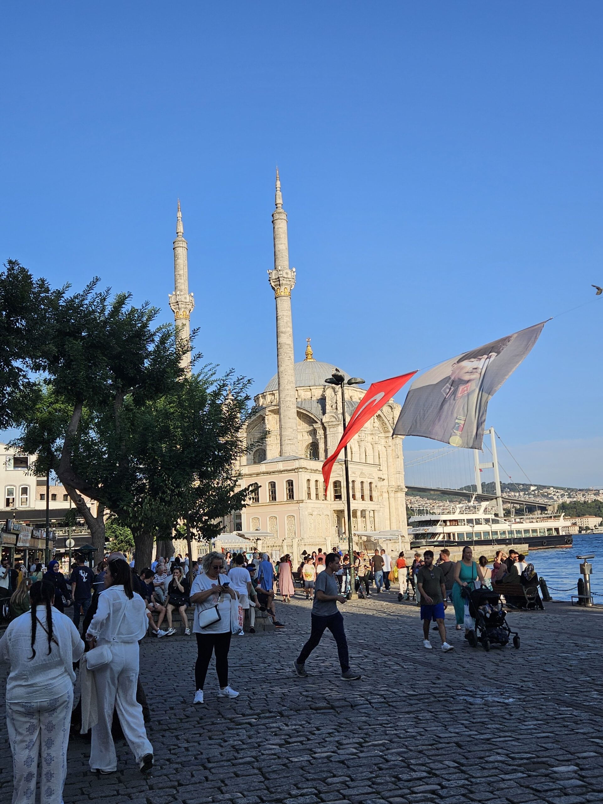 Es wirkt hier auch gemütlich und gleich bei der Fährstation steht eine kleinere aber sehenswerte (von aussen zumindest, hinein sind wir nicht…) Moschee.