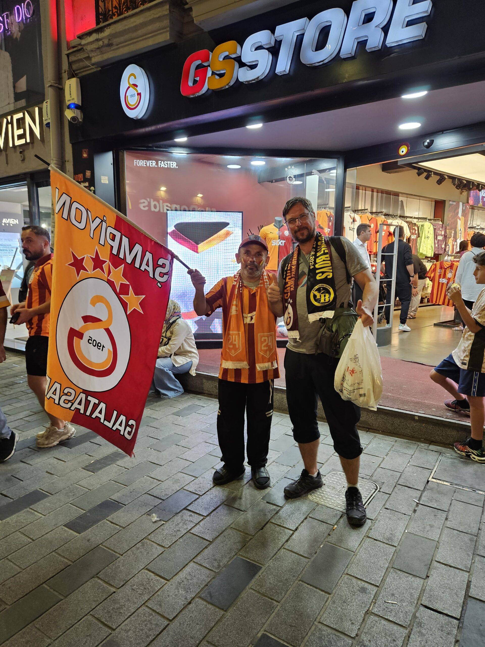 Mit dem Bus fahren wir bis Kabataş und fahren dort mit der Metro hoch zum Taksim-Platz, von wo wir dann gemütlich zum Hotel spazieren. Unterwegs kommen uns zahlreiche Galatasaray-Fans entgegen, sie sind auf dem Weg ins Stadion um gegen YB zu spielen…