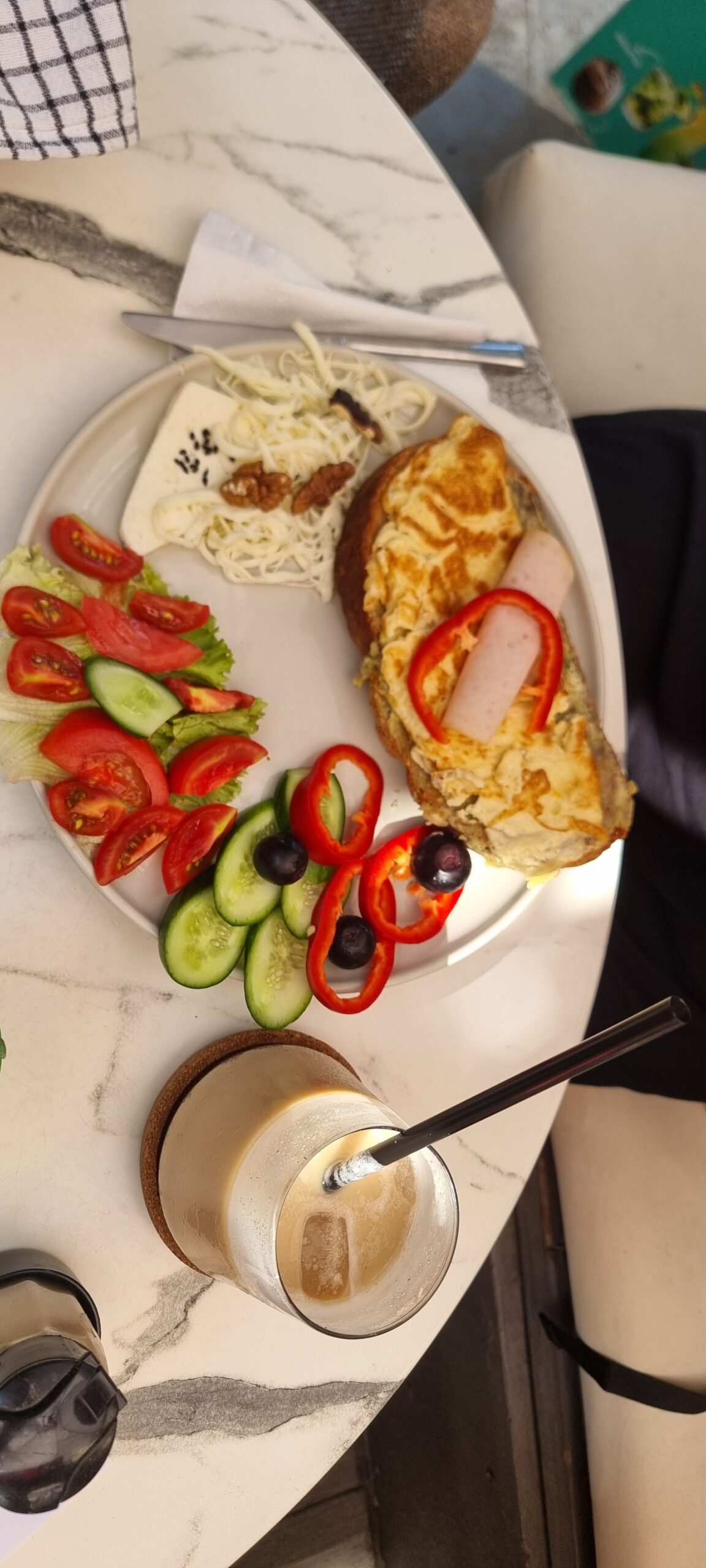 Ich bin noch nicht ganz fit, aber es ist besser als gestern. Nach dem Morgenkaffee (Nescafepulvertütchen) im Bett machen wir uns so kurz nach neun Uhr bereit und verlassen das Hotel um zu frühstücken. Ziel ist ein kleines Café, das wir gestern entdeckt haben, das Gergedan Art Café. Die Frau, die uns da begrüsst spricht kaum Englisch, wir können unsere Wünsche (kein Truthahn, einen kalten Kaffee) trotzdem vermitteln. Es dauert eine Weile, aber das Warten lohnt sich, alles ganz frisch und sehr lecker!