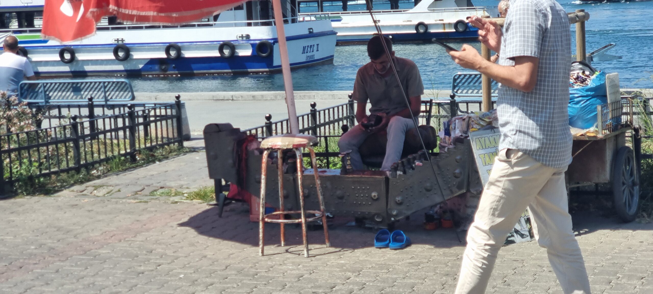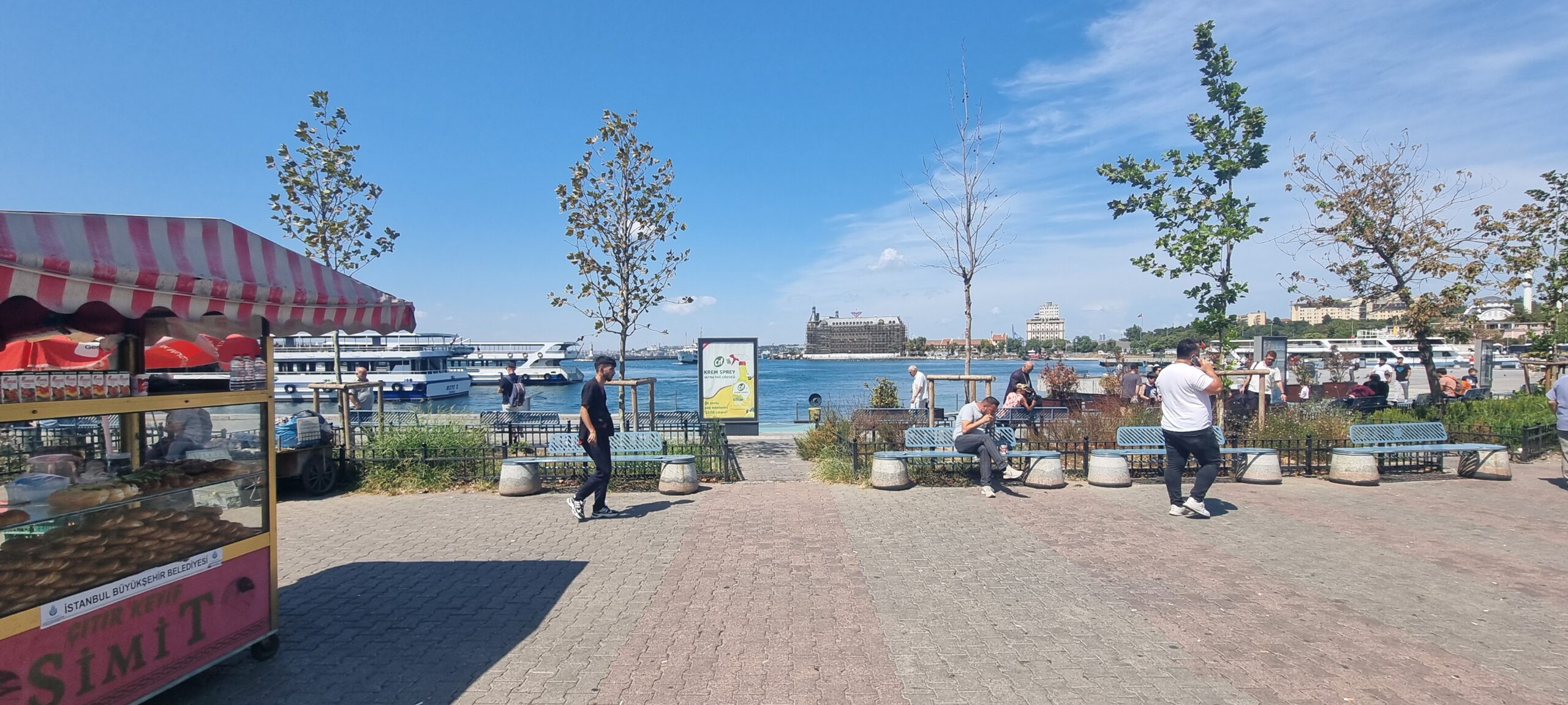 Wir steigen aus und haben nun auf unserer Reise, nach vier Ländern mit vier verschiedenen Sprachen (und Sprachfamilien), zwei Schriften, vier Währungen auch noch einen zweiten Kontinent betreten. Wir sind noch in Istanbul, das ist spürbar und trotzdem nehmen wir hier auch einen etwas anderen Vibe wahr. Einige Schritte entlang dem Pier, dann suchen wir die Fussgängerzone auf. Es ist geschäftig, ein Gewimmel. Aber noch ganz im Rahmen.