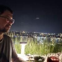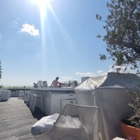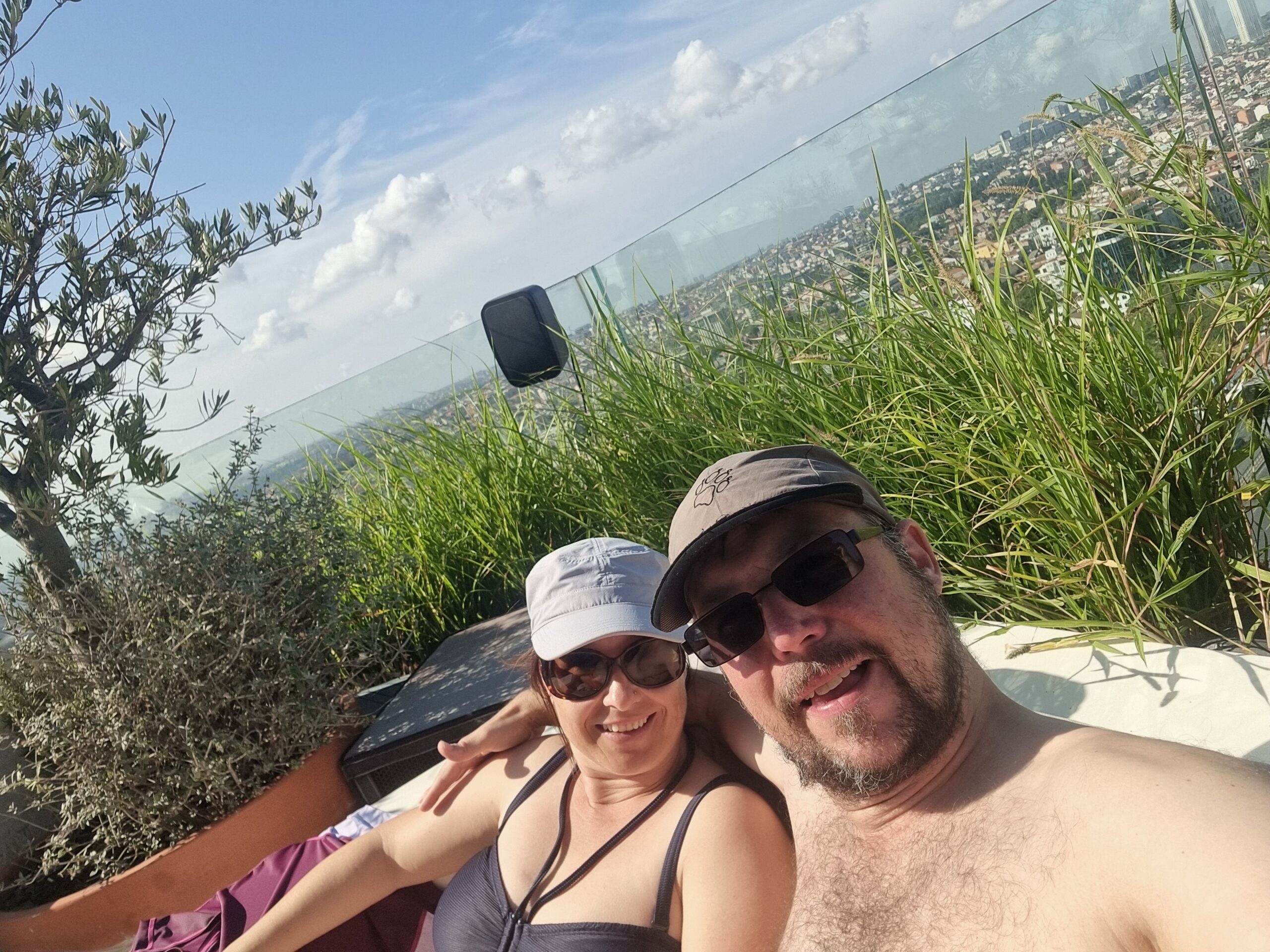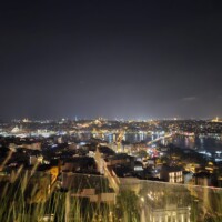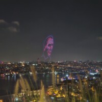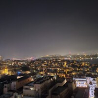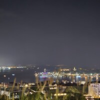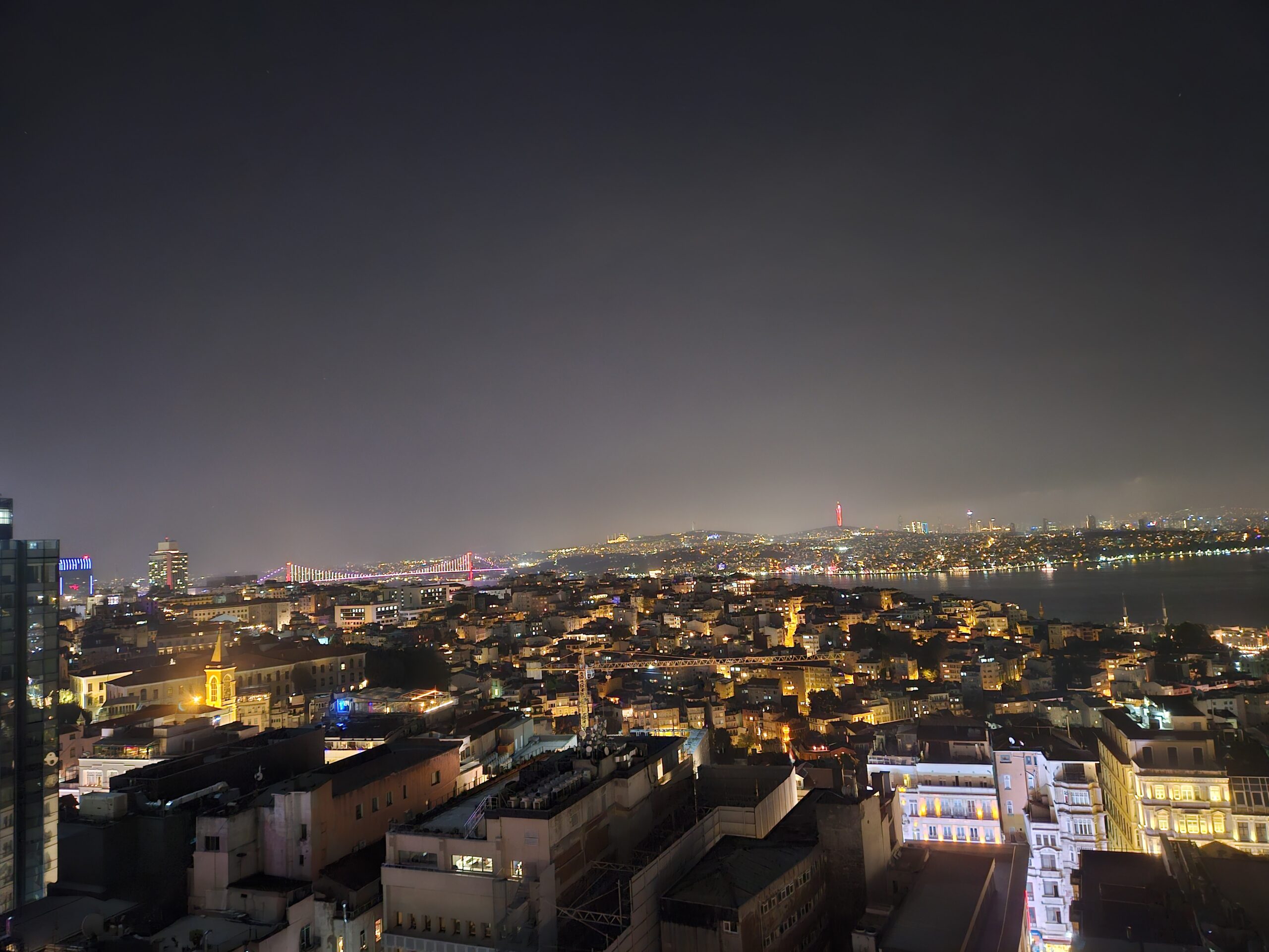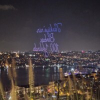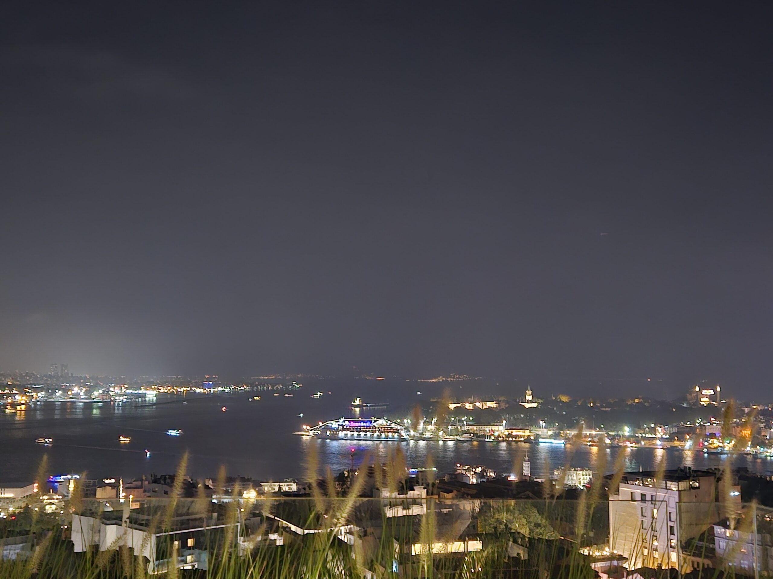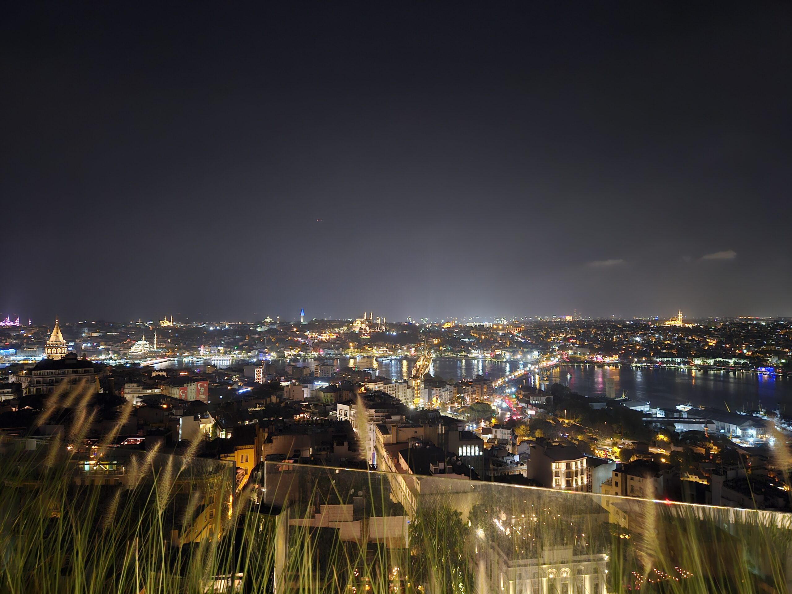 Nun, kurz vor 22 Uhr kehren wir definitiv ins Hotel zurück. Da war ja noch die Rooftop-Bar… Ein Blick kann nicht schaden und so fahren wir mit dem Lift gleich ganz nach oben. Der Ausblick auf das beleuchtete Istanbul ist grandios und so lassen wir uns auch noch auf einen kleinen Cocktail hinreissen, trotz verhältnismässig eher teureren Preisen. Wir sitzen, zufälligerweise, auch perfekt, um die Drohnenshow zum 100-jährigen Geburtstag der Türkei zu sehen. Es ist für uns beide die erste Drohnenshow und sie gefällt uns. Kein Geknalle wie bei Feuerwerk und beeindruckendes Farben- und Motivspiel.