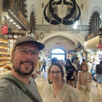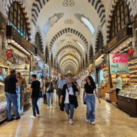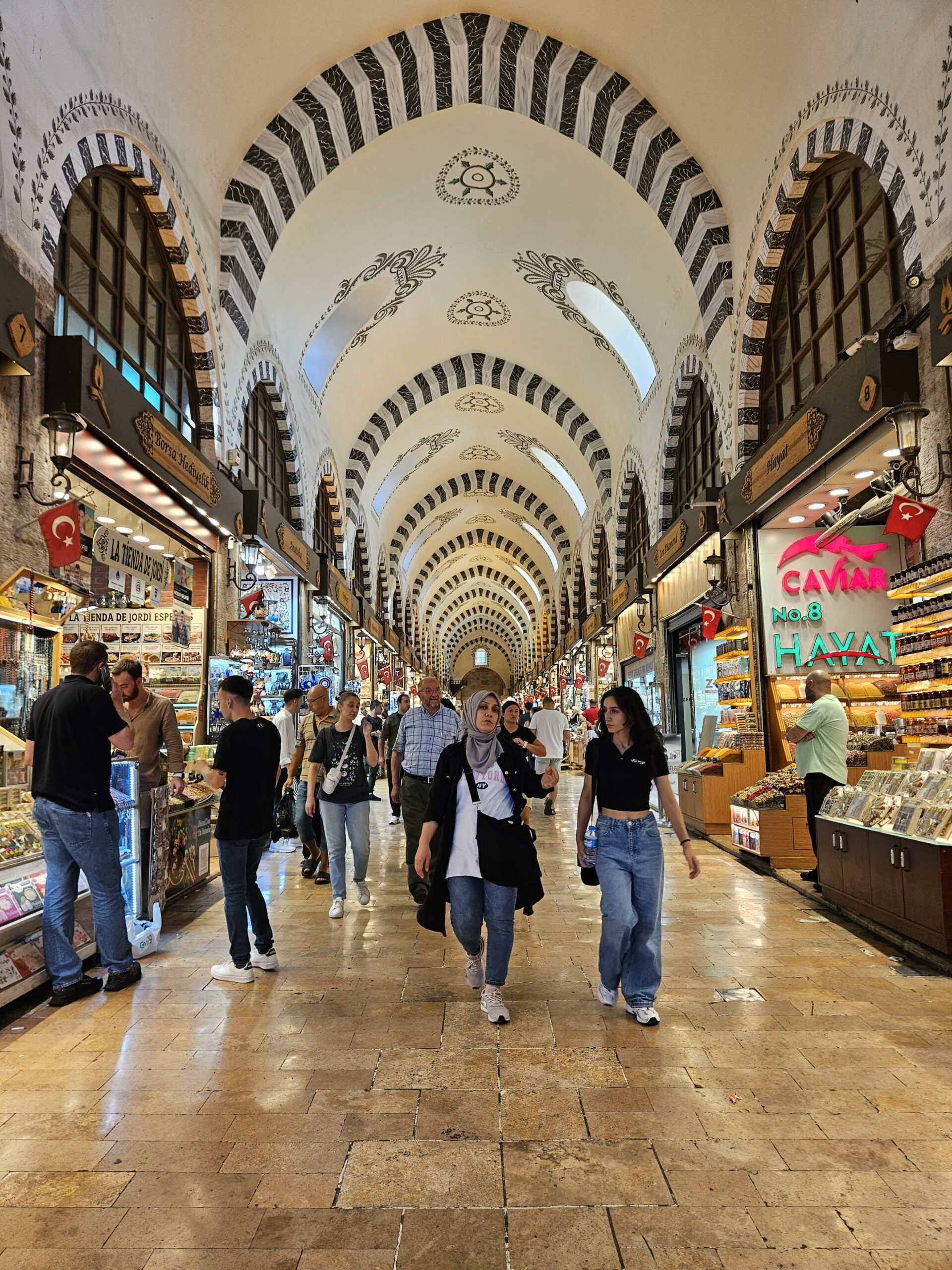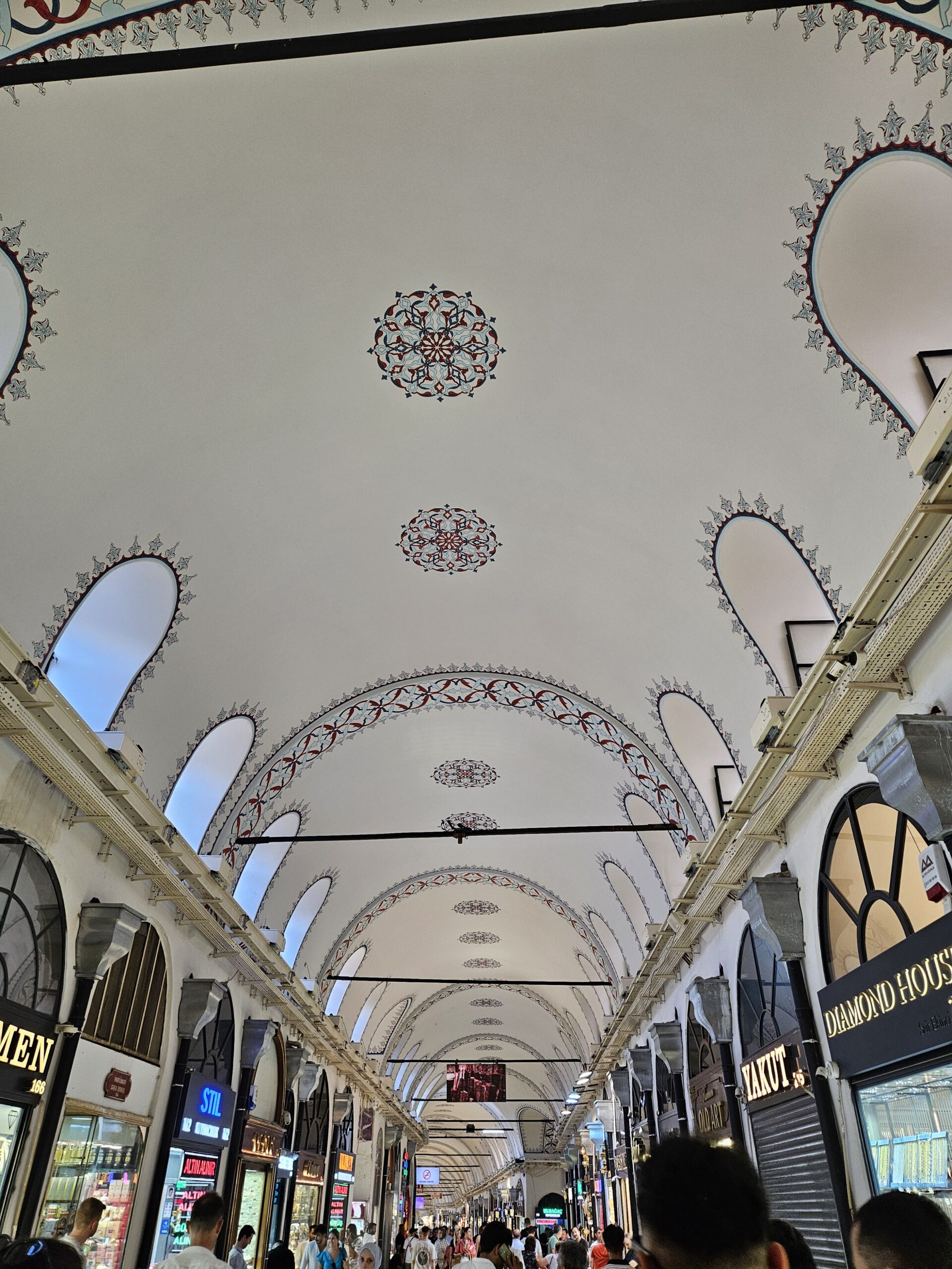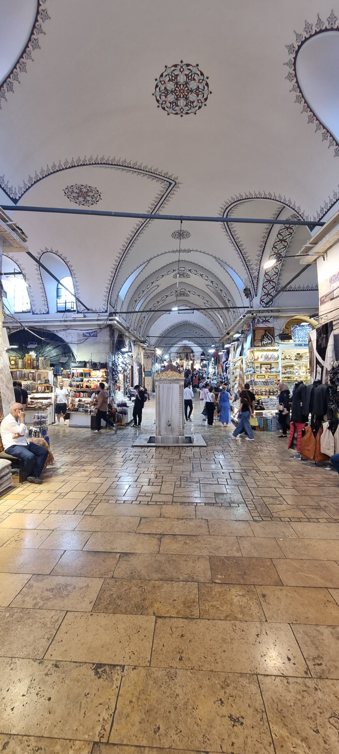 Ein schöner Bau, drinnen gibt es immer etwa dasselbe, es riecht gut und es hat nicht zu viele Leute, so ist das angenehm. Bald sind wir wieder draussen und schlendern nun durch die Gässchen, auch hier wird alles mögliche verkauft. So gelangen wir zum Grossen Basar. Einige Geschäfte haben hier bereits geschlossen, das Ambiente versetzt einen durchaus in eine etwas andere Welt und Zeit. Das Gebäude ist auch wieder beeindruckend, die Deckenmalereien, der Baustil… Wir spazieren eher zügig durch, ein ausführlicheren Besuch wollen wir dann morgen machen.