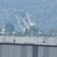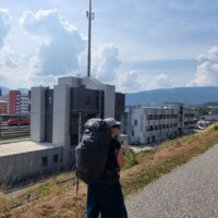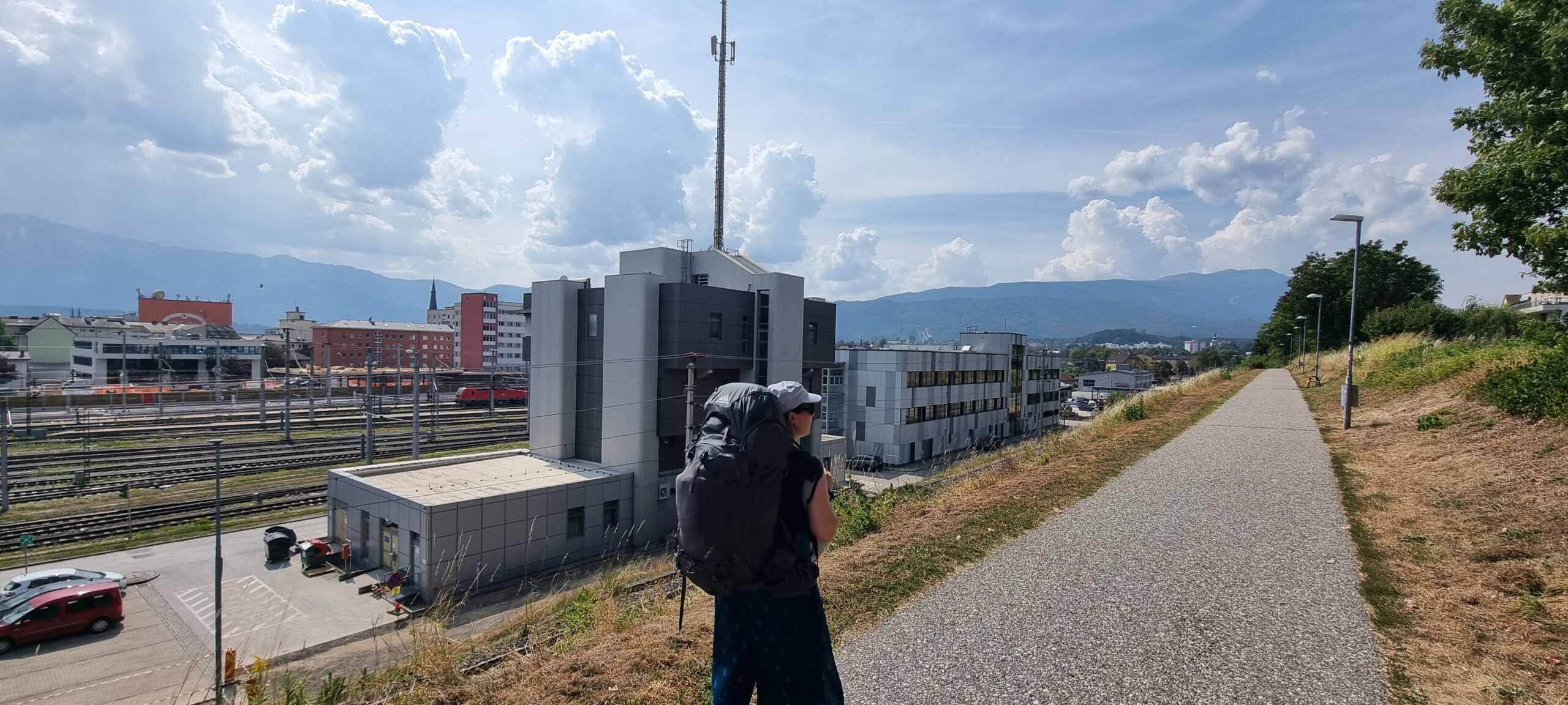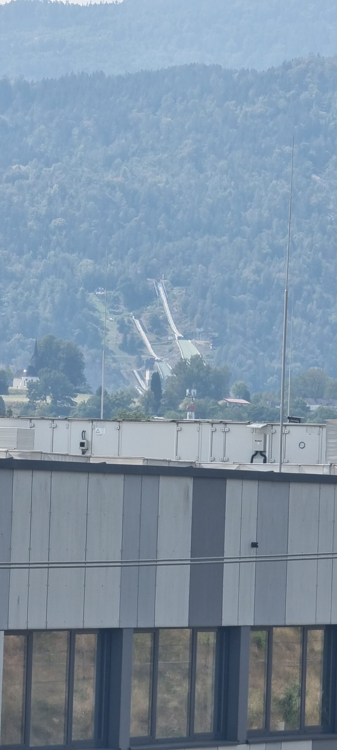 Nun sind wir in diesem Villach angekommen. Statt wie vorgesehen um etwa 8.11 Uhr erst um 13 Uhr. Genau deshalb haben wir ab hier noch gar nichts gebucht. Unser aktueller Plan: Zum Hauptbahnhof Villach laufen (ca. 20 Minuten), dort eine Fahrt nach Triest buchen, eine Nacht dort bleiben, dann weiter nach Ljubljana für 1-2 Nächte und von dort mit dem Nachtzug nach Hause. Also laufen wir mal los. Es ist auch hier nicht gerade kalt 🥵, wir hatten aber auch schon heisser… 🫠 Denise erspäht in der Ferne noch die Springschanzen…