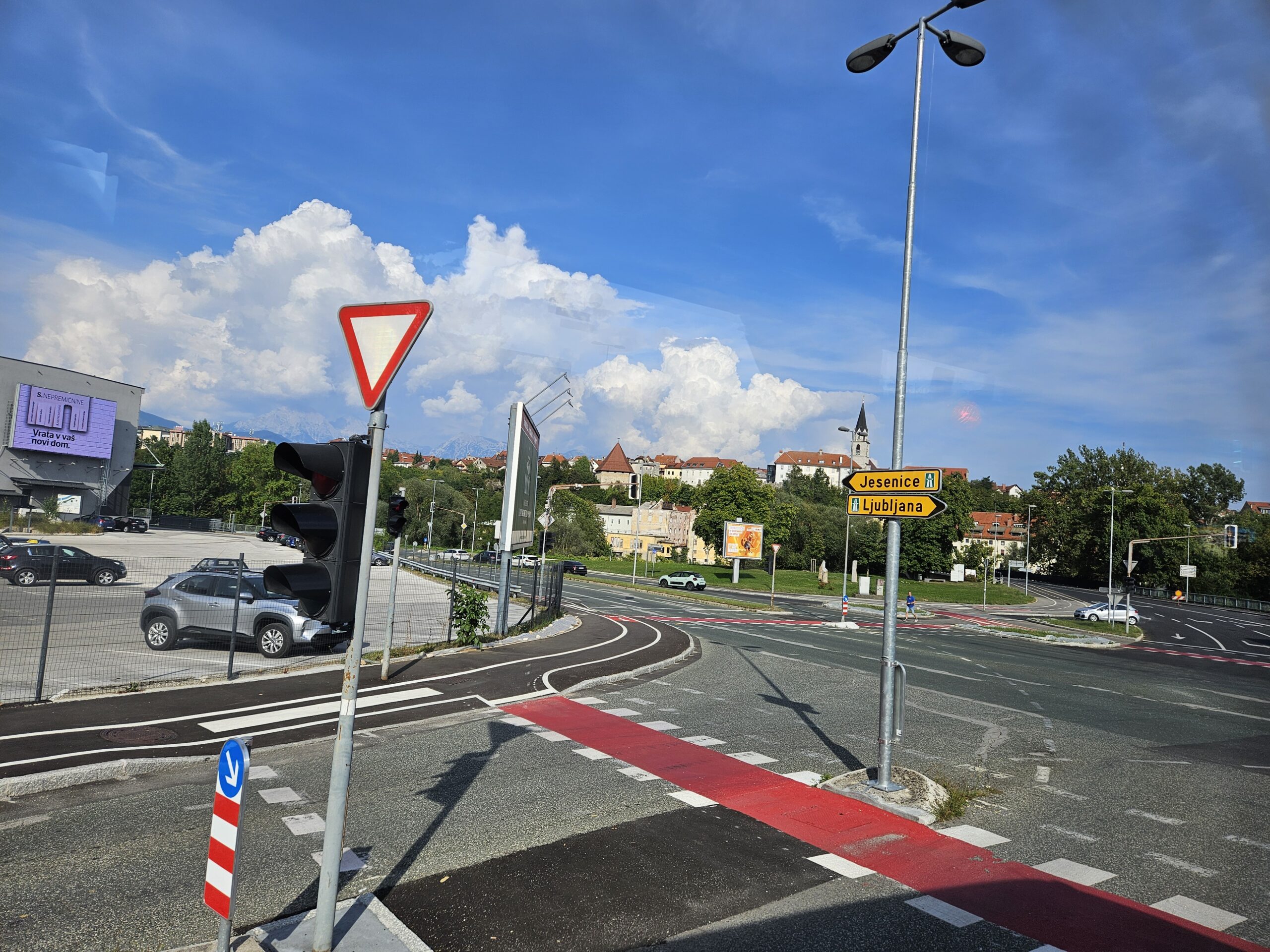 Slowenischer Schlager läuft, vor uns ein Töffli und ein 45er-Auto… trotzdem kommen wir kurz nach 17 Uhr fast planmässig am Bahnhof Ljubljana an.